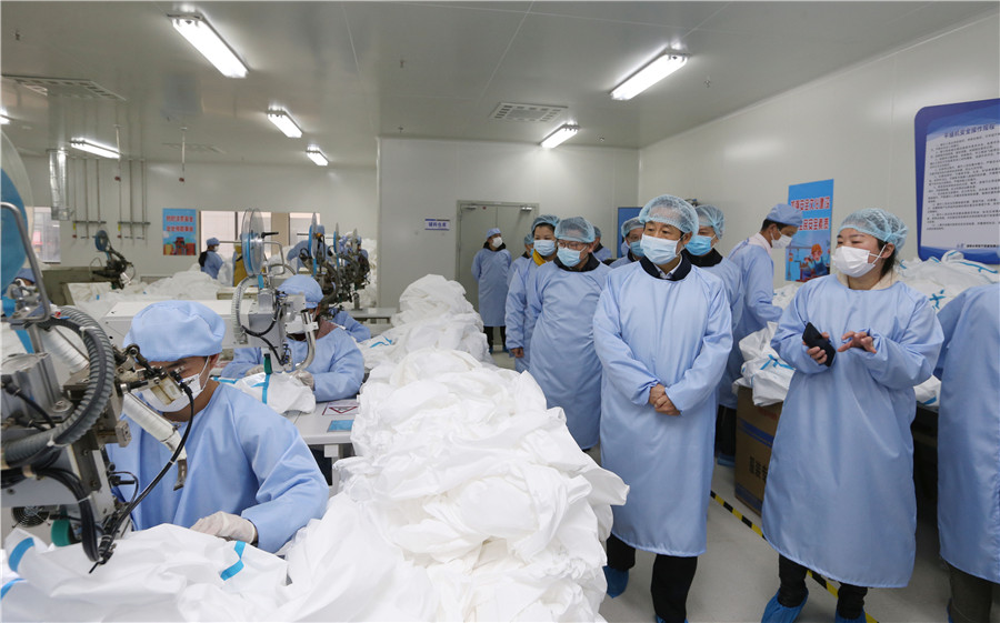 “原材料、资金、用工有困难吗?” “无菌车间达到标准吗?”“员工怎么排班?”许达哲一行来到湖南永霏特种防护用品有限公司设在韶山市的夏龙医疗器械生产基地,查看了医用防护服的缝制、杀菌等车间。许达哲指出,企业要立足当前,争分夺秒,严格安全卫生标准,开足马力生产,为疫情防控提供有力的物资保障;要着眼长远,补齐上下游产业短板,为发展医药卫生产业、完善公共卫生应急管理体系作出贡献。