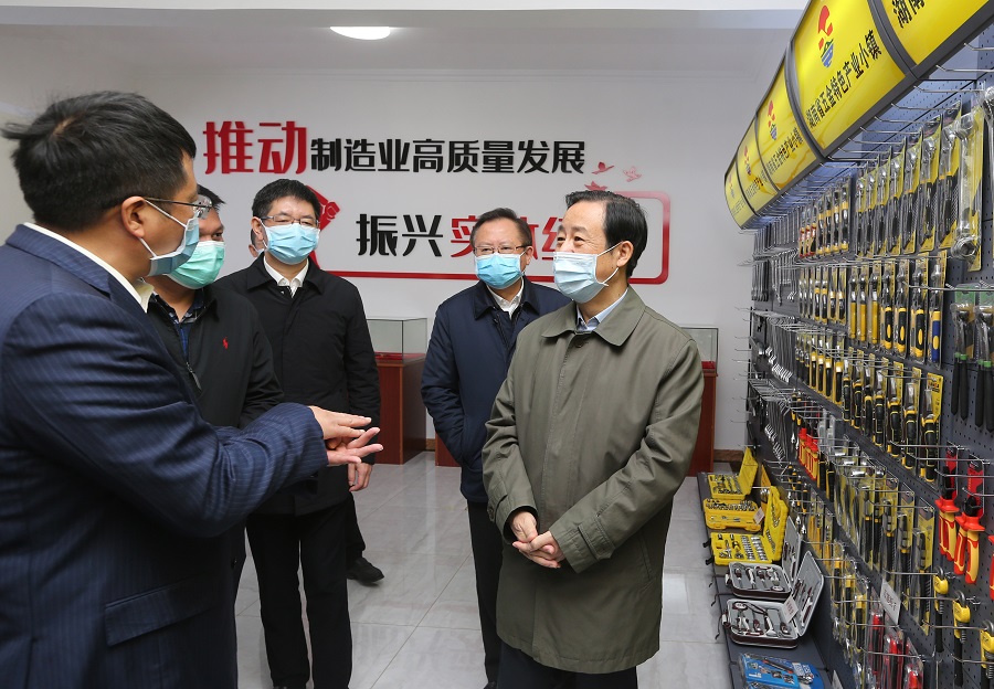 4月1日上午,省委副书记、省长许达哲在邵东市仙槎桥镇考察邵东五金科技创新产业园。