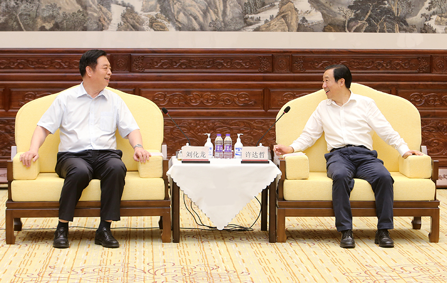 近日,省政府与中国中车集团在长沙举行会谈。省委副书记、省长许达哲,中国中车集团党委书记、董事长刘化龙出席。