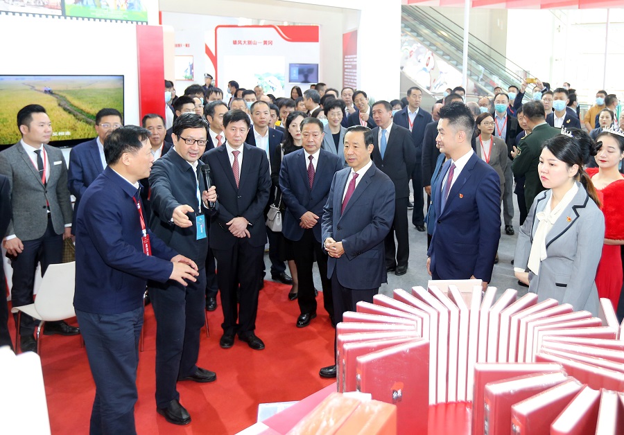 开幕式前,许达哲与参会嘉宾参观了红博会展览。