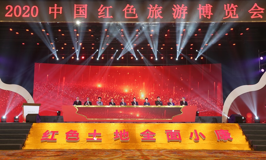 11月14日上午,以“红色土地·全面小康”为主题的2020中国红色旅游博览会在长沙开幕。图为开幕式启动现场。
