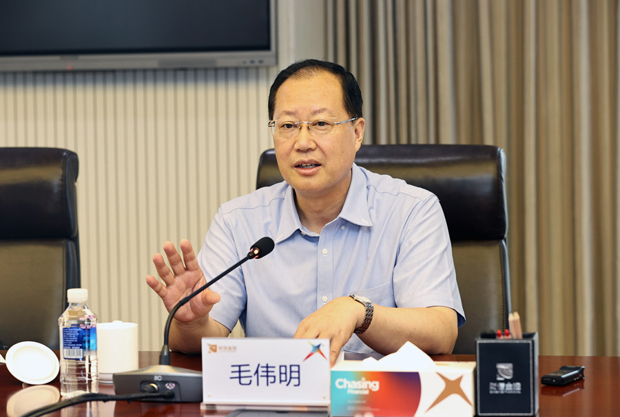 6月29日上午,省委副书记、省长毛伟明先后赴湖南财信金融控股集团有限公司、湖南湘投控股集团有限公司调研。图为毛伟明在财信金控集团主持召开座谈会。