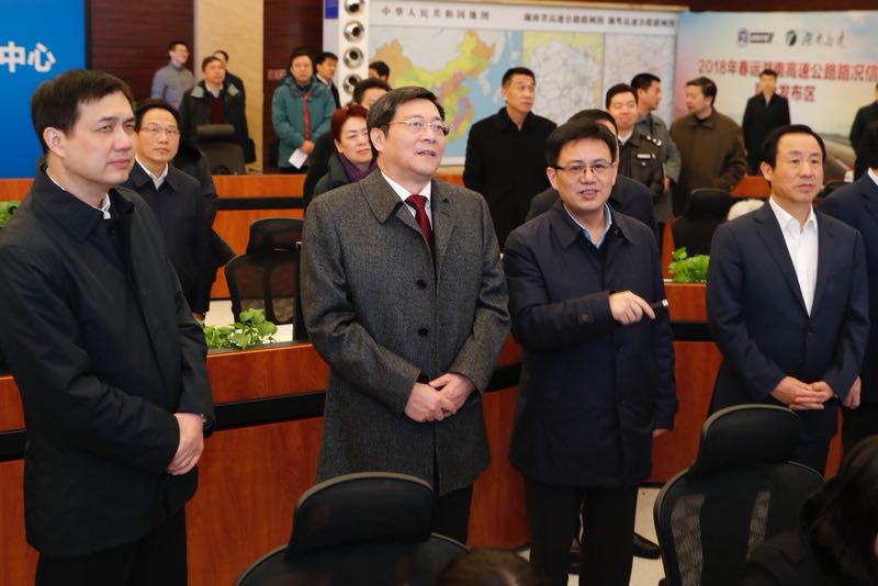 1月27日晚上8时45分许,在省十三届人大一次会议主席团第四次会议结束后,省委书记、省人大常委会主任杜家毫,省委副书记、省长许达哲一行赶赴省高速公路监控指挥中心,了解实时道路交通运输情况,听取省公安厅、省交通厅、省经信委、省气象局、省电力公司、省通信管理局、省安监局、省住建厅、省民政厅等部门有关情况汇报,现场督导调度全省雨雪冰冻天气防范应对工作。省领导陈向群、谢建辉、张剑飞、陈飞一同前往。