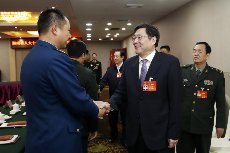1月27日上午,省委书记、省人大常委会主任杜家毫,省委副书记、省长许达哲来到解放军代表团驻地,亲切看望了出席省十三届人大一次会议的解放军代表团全体代表。杜家毫强调,要全面贯彻落实习近平强军思想,进一步加强军地合作,加快推进军民融合深度发展,奋力开创强军兴湘新局面。