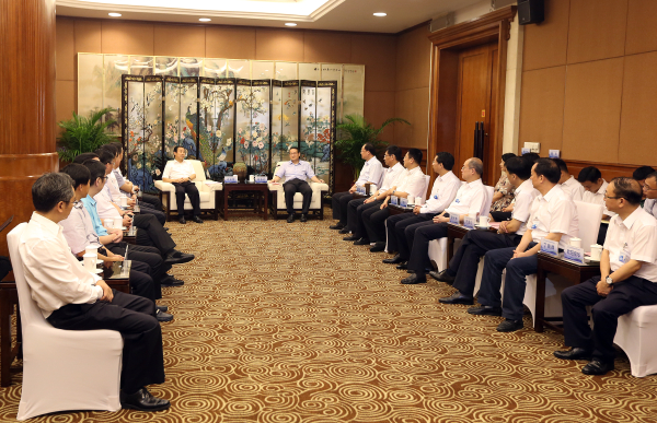 9月4日下午,参加第十二届泛珠三角区合作与发展论坛暨经贸洽谈会的省委副书记、省长许达哲在广州与江西省委副书记、代省长易炼红一行举行会谈。湖南日报记者 赵持 摄