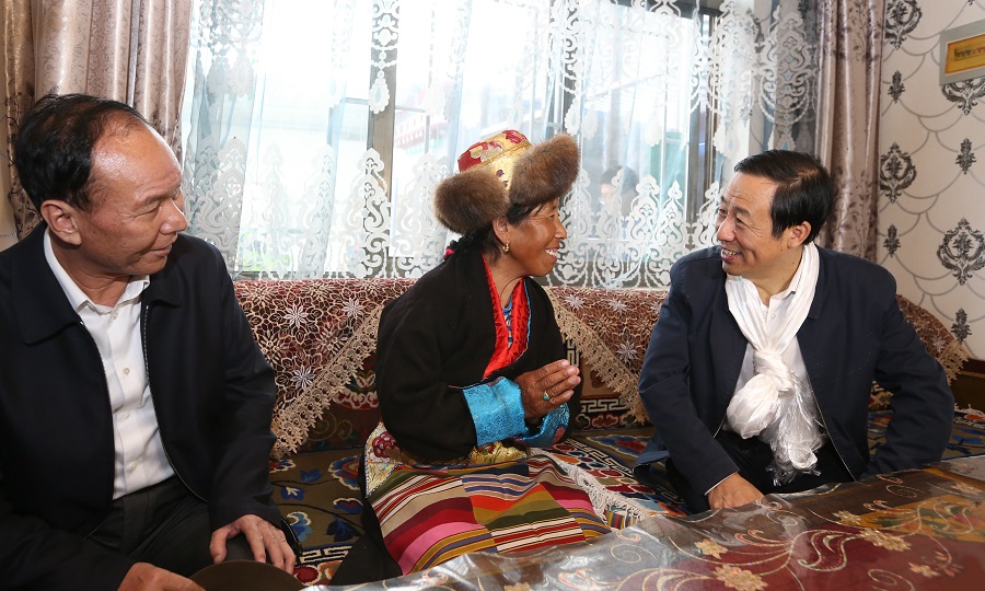 许达哲齐扎拉一行考察扎囊县桑耶易地扶贫搬迁集中安置点,走进村民查果家做客。