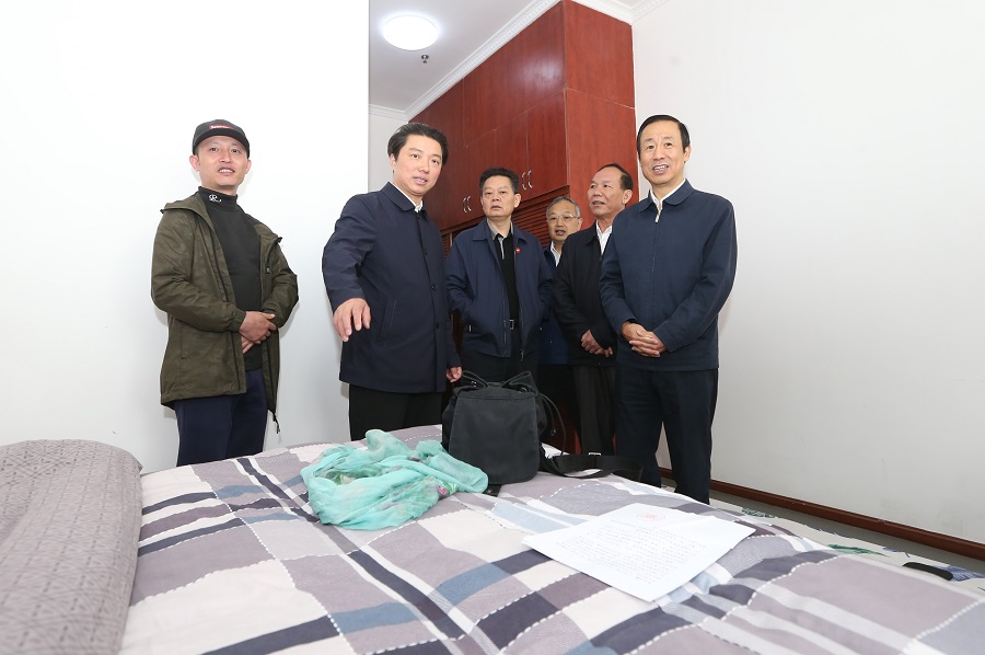 代表团一行走访慰问援藏干部,图为许达哲察看援藏干部宿舍。