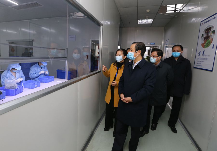2月13日上午,省委副书记、省长许达哲在长沙检查复工复产疫情防控并督导环境治理工作。图为许达哲走访湖南骏越塑胶科技有限公司。