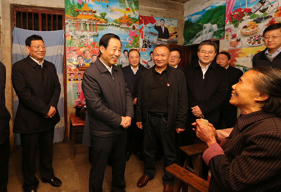 3月24日上午,省委副书记、省长许达哲在新化县琅塘镇光明村走访慰问建档立卡贫困户何东娥。