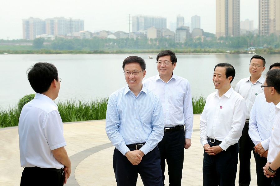 韩正先后到长沙橘子洲、岳阳东风湖,查看水体保护和治理,指出要从根本上实现源头控制,加快水体沿岸沿线产业结构调整,加大黑臭水体治理和生态修复力度,实现水生态环境良性循环。在岳阳城陵矶老港,韩正查看港口提质改造情况,强调长江经济带发展要坚持共抓大保护、不搞大开发,走生态优先、绿色发展之路,对暗访发现的问题必须整改到位,久久为功,坚决守护好一江碧水。