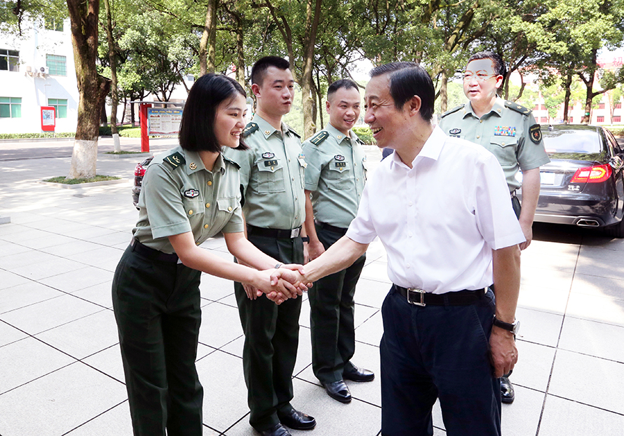 7月29日上午,省委书记杜家毫来到国防科技大学,看望慰问学校师生、官兵和科研人员,与大家亲切交谈。