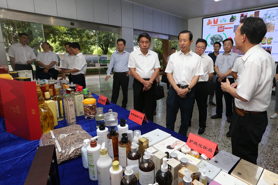 8月19日上午,省委副书记、省长许达哲赴省林业局调研。图为许达哲在省林业科学院了解油茶产业发展情况。