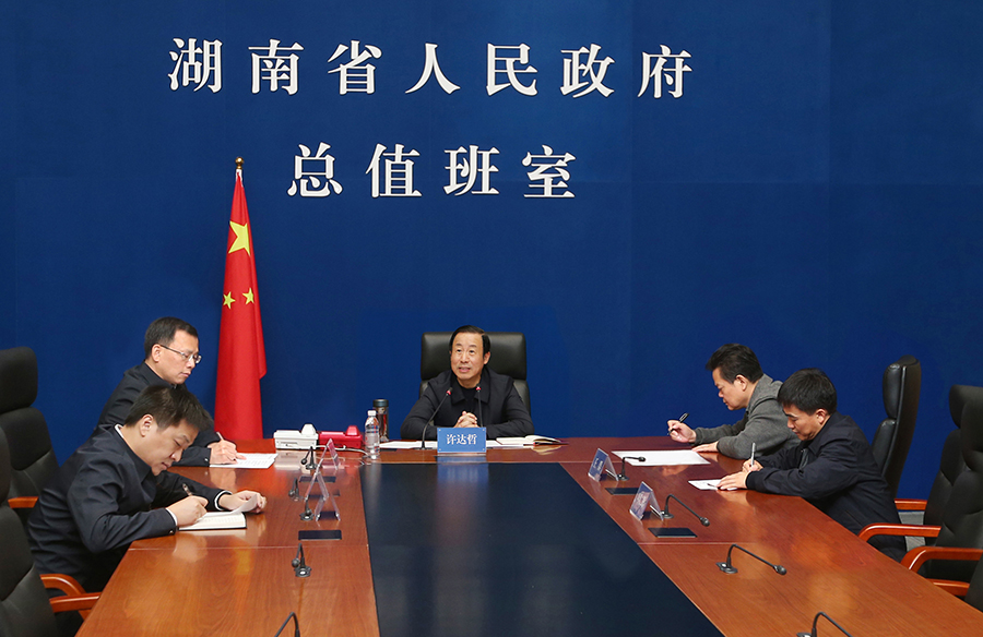 10月8日上午,省委副书记、省长许达哲在省政府总值班室,与省直部门和市州以及相关企业进行视频连线。