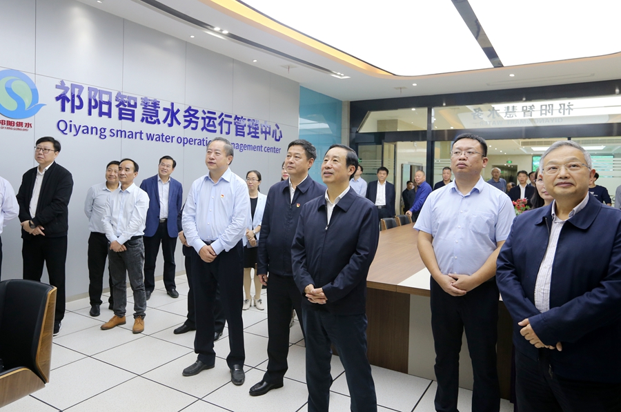 会前,许达哲与代表们一同考察了祁阳县新埠头水厂,了解了该县城乡供水一体化、安全饮水工程建设等情况。