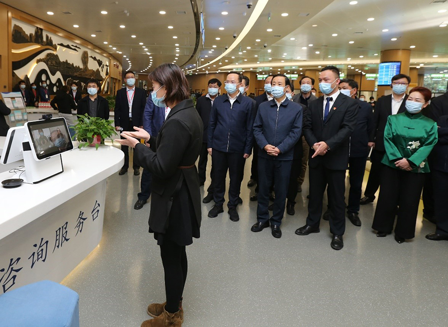 许达哲详细了解省政务服务智慧管理平台运行和“一件事一次办”改革情况,现场了解政务服务大厅建设情况,并听取了省政务管理服务局和省政府政务服务中心工作情况汇报。