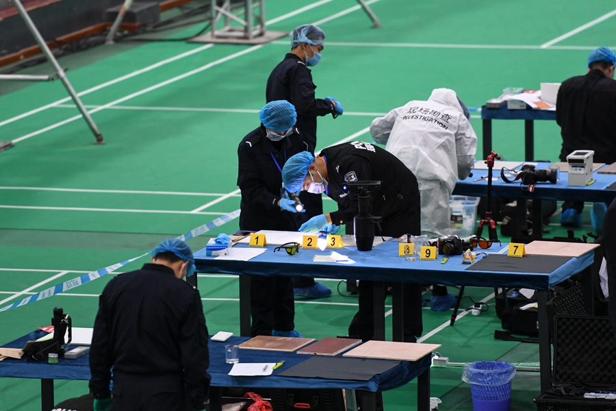 11月25日,湖南警察学院,参赛选手对物证进行提取。当天,第一届全省刑事技术职业技能竞赛决赛举行。