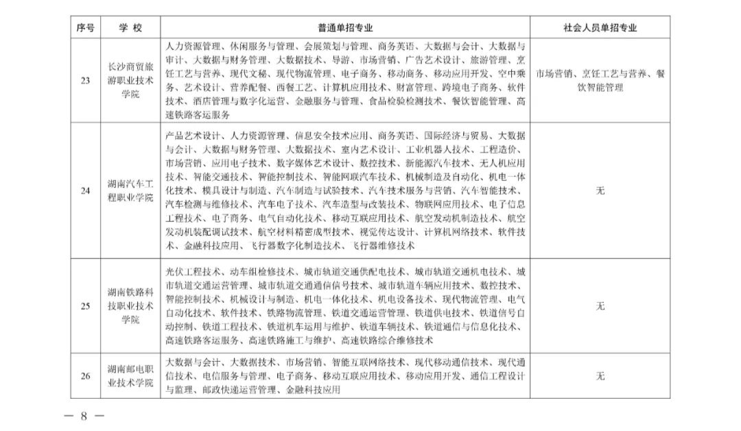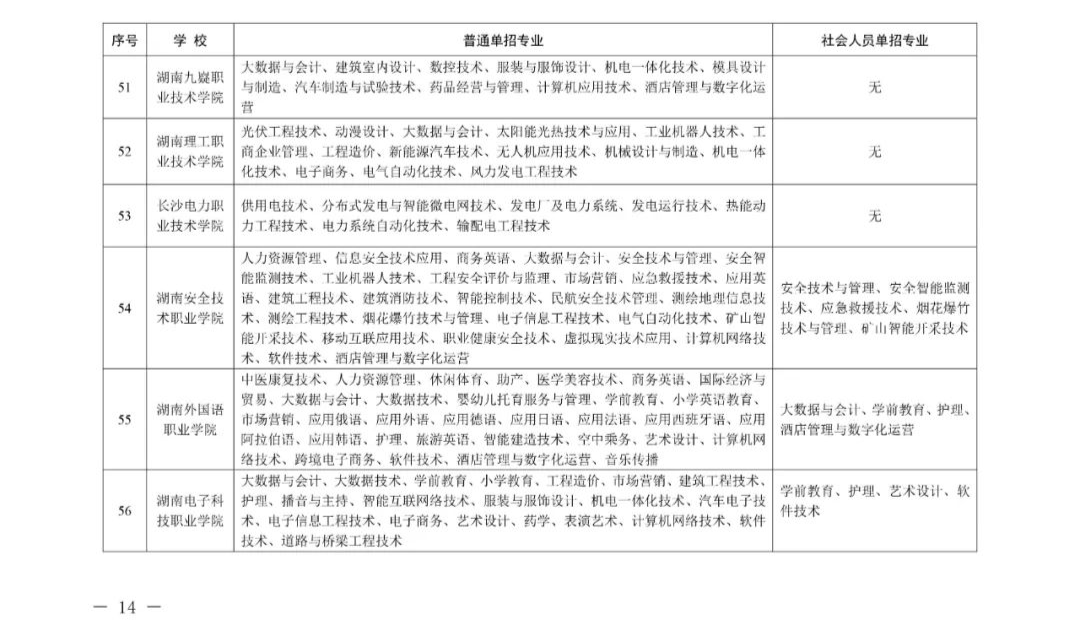 2021年湖南省共下达75所高职院校单招计划共14.1万人,经教育部和湖南省批准的普通高职院校三年制专科专业都可进行单招,不分公办和民办,公办和民办都属于教育部批准的院校。我校作为一所民办高校,经过十余年的艰苦奋斗、砥砺前行,在一点一滴的进步中不断发展壮大,去年6月29日教育部同意升格为本科层次职业学校,是湖南省第一所也是目前唯一一所职业本科院校,也是全国27所职业本科大学之一,招收单招专科考生和统招专科批次、本科批次的考生,是湖南省第一所单招专科的职业本科学校。