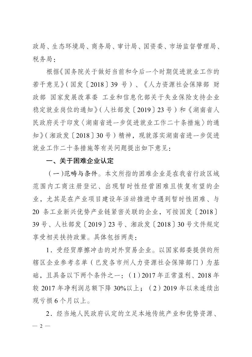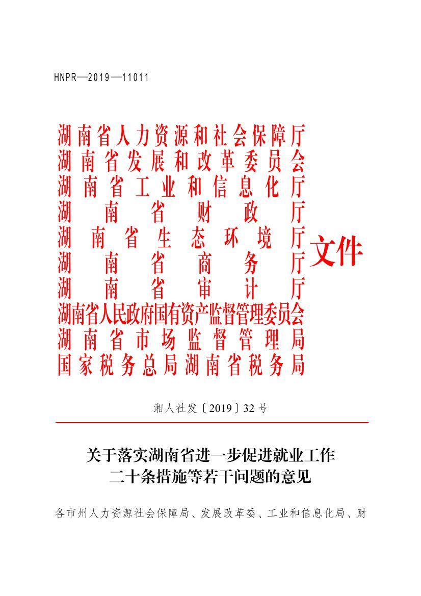 关于落实湖南省进一步促进就业工作二十条措施等若干问题的意见