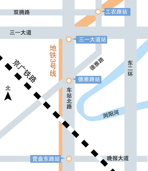 由中国铁建二十五局集团和湖南省第三工程有限公司组成的联合体共同施工的地铁3号线土建施工9标包括“1站3区间”,即工农路站、营盘东路站至德雅路站区间、德雅路站至三一大道站区间、三一大道站至工农路站区间。