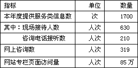 由于统计为公众服务的主要内容是统计数据和统计分析,为使社会公众能方便的获取数据和相关分析资料,我局在门户网站上设立了《互动与服务》栏目,方便公众获取相关信息,2012年共收到留言264条,并做到条条有答复,件件有反馈。