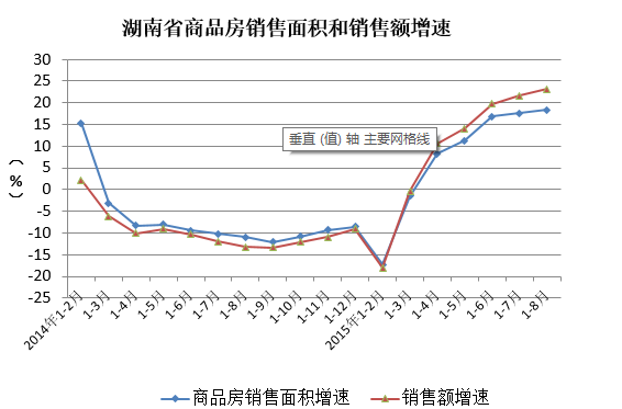 1-8月,全省商品房销售面积3250.64万平方米,同比增长18.4%,增速比1-7月提高0.8个百分点,比全国平均水平高11.2个百分点,居全国第4。全省商品房销售额1461.31亿元,增长23.2%,比1-7月提高1.5个百分点,比全国平均水平高7.9个百分点,居全国第5。销售面积和销售额均居中部六省首位。
