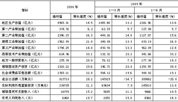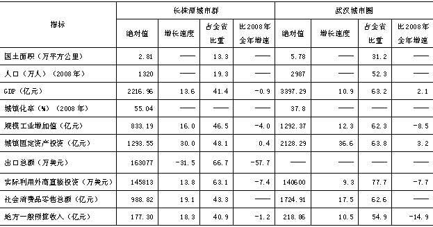 长株潭城市群主要经济指标(2008年-2009年上半年)