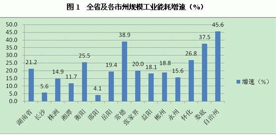(三)个别市州节能降耗工作形势非常严峻。一季度,全省14个市州由于受产业和资源结构布局以及经济地理格局等因素影响,加上采取措施的力度大小不一等原因,市州间的工业节能降耗工作进展程度存在着不均衡现象。一季度,规模工业单位增加值能耗降低幅度高于全省平均水平的有邵阳、株洲、长沙、湘潭、益阳、永州、郴州、张家界、岳阳。规模工业单位增加值能耗降低幅度低于全省平均水平的有怀化、娄底、常德、湘西、衡阳。其中怀化、娄底规模工业单位增加值能耗比2009年分别下降4.2%、2.4%;常德、湘西、衡阳规模工业单位增加值能耗比2009年不降反升,分别上升4.0%、4.0%、4.5%。个别市州节能降耗工作形势非常严峻,有可能完不成“十一五”节能降耗工作任务,需引起高度重视。