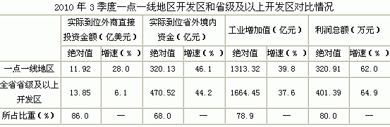 一点一线地区是我省经济发展的主力军,区位优势和经济优势十分明显,区域内8个国家级开发区、36个省级开发区对本地区经济乃至全省经济的发展都起着重要的作用,各项主要指标占全省开发区的比重均在六成以上。