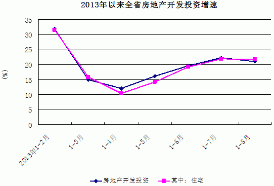 1-8月,全省房地产开发完成投资1530.43亿元,同比增长21%,比全国平均增速高1.7个百分点。但比1-7月回落1.2个百分点,其中,住宅完成投资1078.68亿元,增长21.7%,比1-7月回落0.2个百分点。