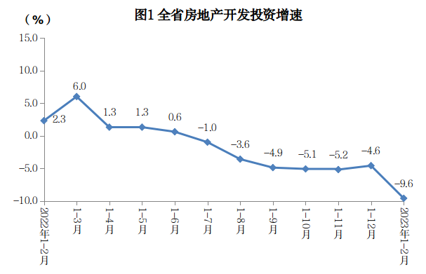 1-2月,全省商品房施工面积29414.99万平方米,同比下降11.8%,其中,住宅施工面积22340.27万平方米,下降10.1%。房屋新开工面积592.95万平方米,下降9.0%,其中,住宅新开工面积454.61万平方米,下降9.8%。房屋竣工面积719.31万平方米,下降11.2%,其中,住宅竣工面积569.83万平方米,下降9.8%。