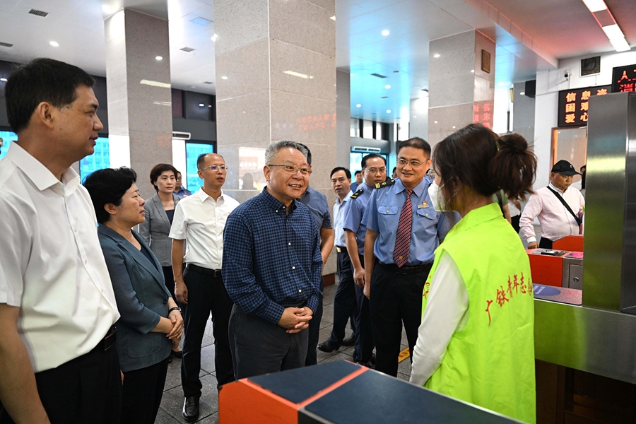 热闹非凡的五一商圈,假日期间人流如织。在五一商圈管理指挥中心,沈晓明察看城市管理和治理平台、人员密集度智能识别系统和全省文旅指挥调度平台等,听取五一商圈城市治理服务、快速响应机制以及全省文旅大数据等情况介绍。他说,要进一步优化管理流程、完善工作机制,更好保障城市安全有序运行。来到长沙火车站,沈晓明了解节日客流和治安联动等情况,并与志愿者亲切交流,强调要科学分析研判,合理安排运力,更好地服务群众。