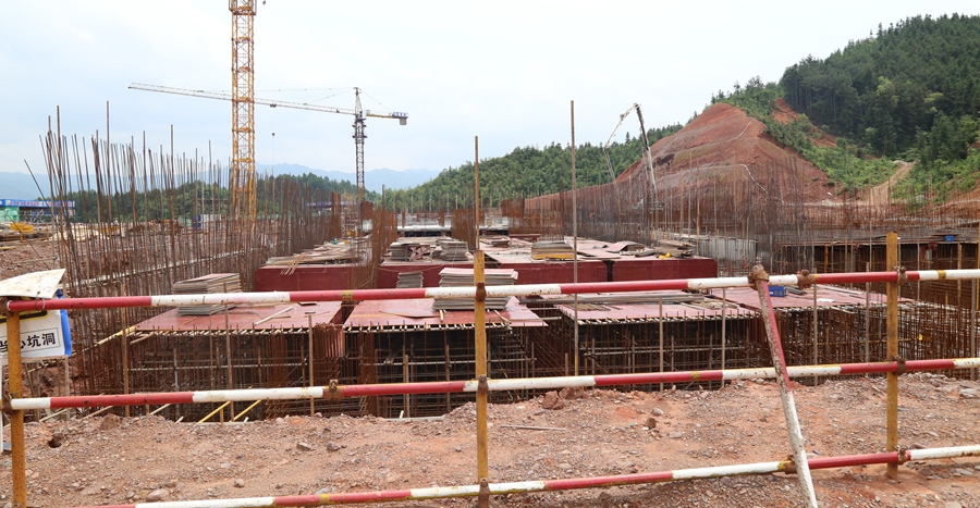 平江县供水枢纽工程长寿水厂施工现场