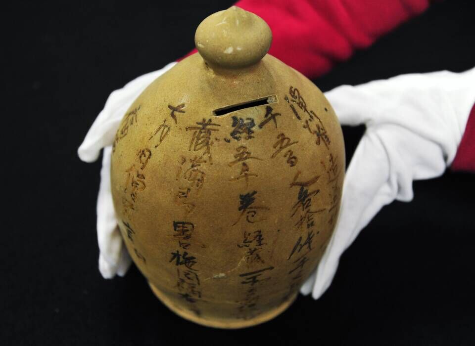 捐赠仪式后,扑满被放入湖南省博物馆“湖南人三湘历史文化陈列”长沙窑展柜向公众展出。(记者 龙文泱 通讯员 李叶)