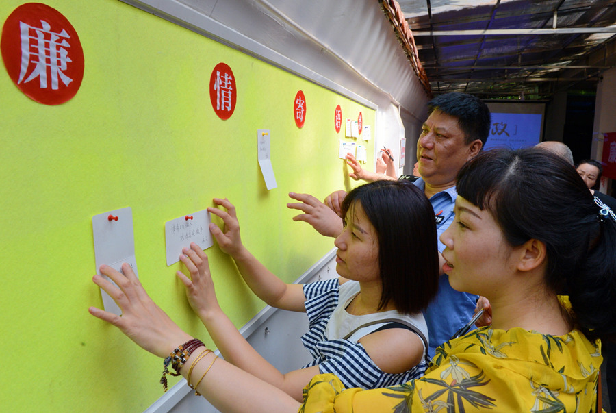 5月16日,长沙市开福区伍家岭街道浏阳河社区开展廉政教育主题活动,通过“廉情”寄语公示、“廉洁”知识答题、“廉政”案例宣讲等多种方式,提高辖区党员干部廉洁从政意识。湖南日报记者 徐行 通讯员 汪硕 摄影报道
