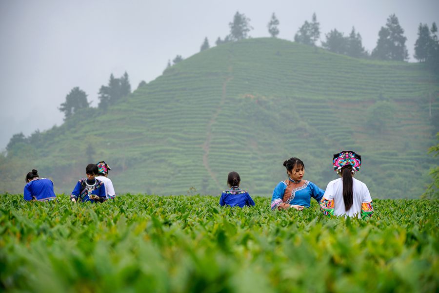4月20日,吉首市马颈坳镇隘口村,茶农在采摘谷雨茶。杨帆 摄