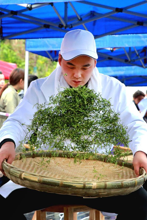 4月20日,吉首市马颈坳镇隘口村,制茶能手进行制茶技艺比拼,角逐“茶王”称号。郑春艳 摄