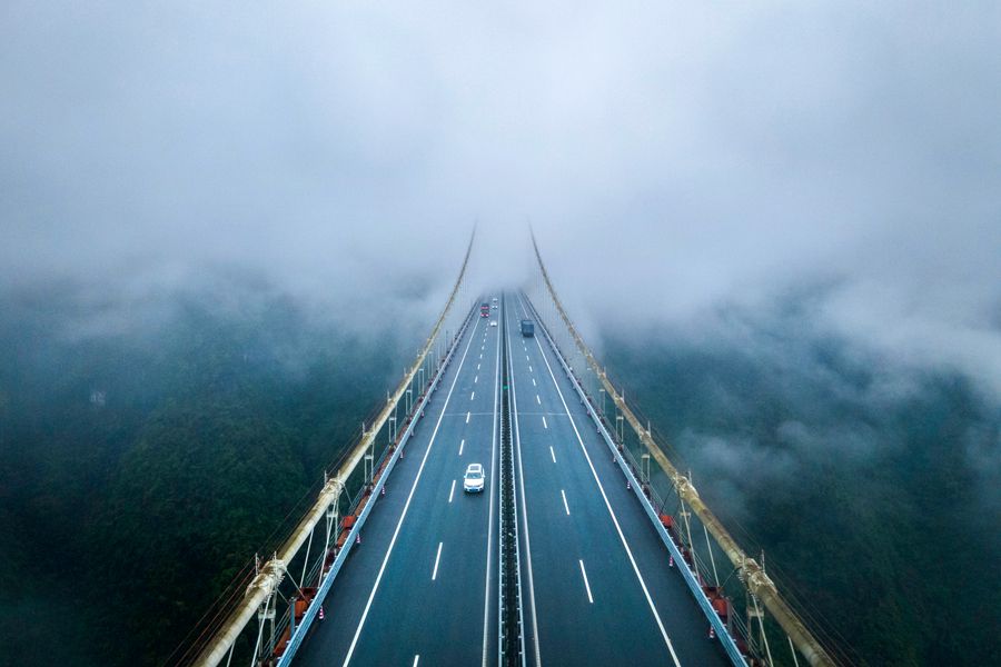 4月20日,吉首市矮寨大桥穿越云雾,如同悬浮空中。一座横跨天堑的大桥,连接了深山与世界,让矮寨不“矮”,让梦想更近。彭璟 摄