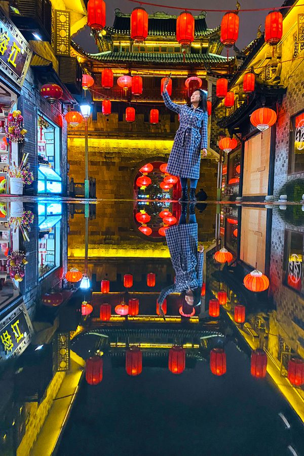4月20日晚,吉首市乾州古城灯光璀璨,美轮美奂,吸引了游客欣赏游玩。凌佳懿 摄
