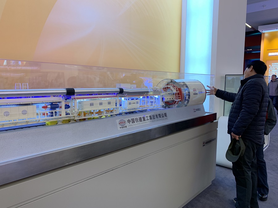 来自河北的笑笑小朋友在父母的陪伴下,听着解说,兴趣盎然地趴在中车株洲电力机车研究所有限公司生产的新型智轨电车模型旁,久久不愿离去;铁建重工的“加丽娜”号盾构机模型,根据真机1∶16比例制作而成,火红的刀盘在展柜内缓缓转动,不少参观者驻足拍照、合影……