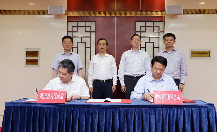 6月9日上午,省政府与中粮集团在长沙签署战略合作协议。省委副书记、省长许达哲,中粮集团总裁于旭波共同见证签约。