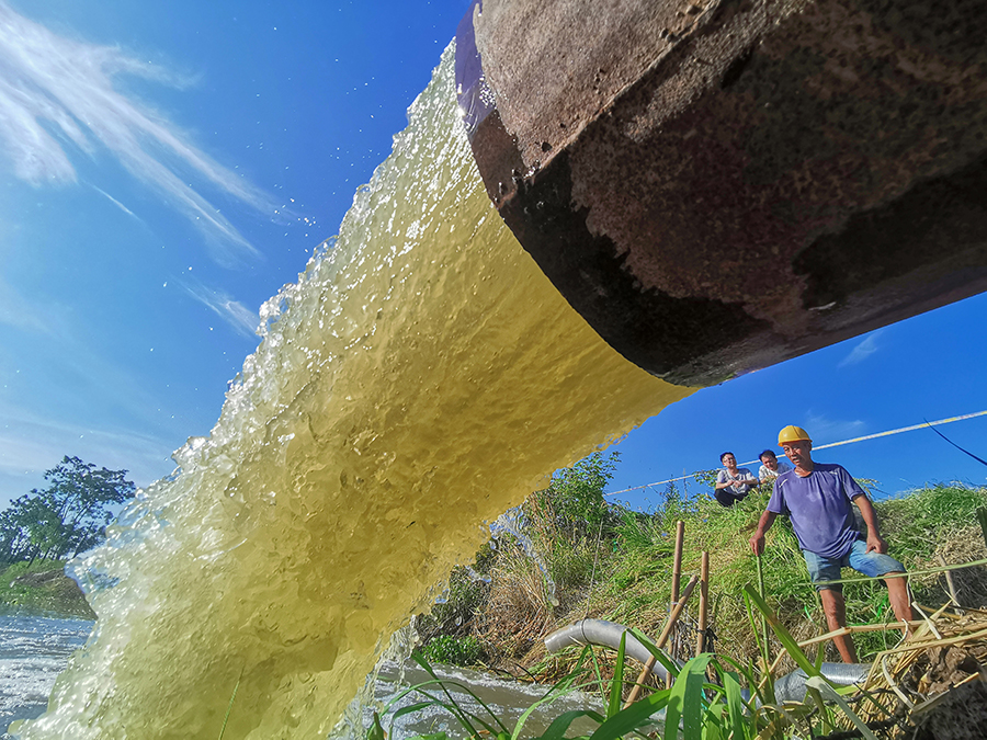 8月15日,临湘市江南镇鸭栏村,村民用水泵从冶湖里抽水到引水河渠道,保障农业灌溉用水。连日来,该镇采取蓄、引、抽、提等多种措施抗旱,有效缓解了旱情。湖南日报全媒体 记者 郭立亮 通讯员 张子龙 摄影报道