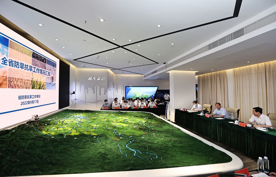 9月17日下午,省委副书记、省长毛伟明在省防旱抗旱工作专班调研并讲话。湖南日报全媒体记者 刘尚文 摄