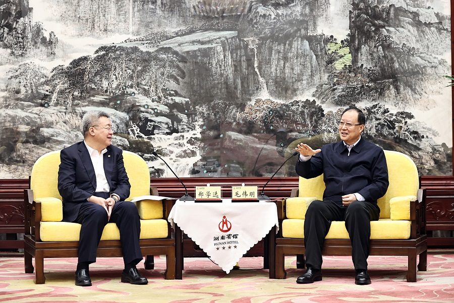 3月28日上午,省政府与中国建筑集团有限公司在长沙举行工作会谈,就深入贯彻习近平总书记关于湖南工作的重要讲话和指示批示精神,持续深化央地合作,共育建筑业新质生产力。省委副书记、省长毛伟明,中建集团党组书记、董事长郑学选参加。