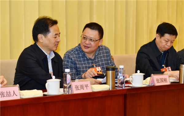 张国刚委员(中)在小组讨论会上与同组委员一起交流。湖南日报记者 田超 摄
