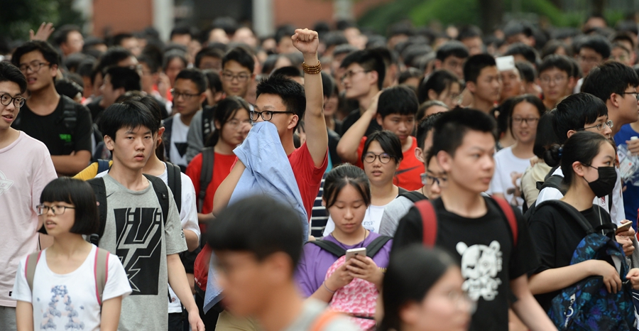 6月7日17时20分,高考长沙市第一中学考点,考生们完成首日考试走出考场。见习记者 傅聪 摄