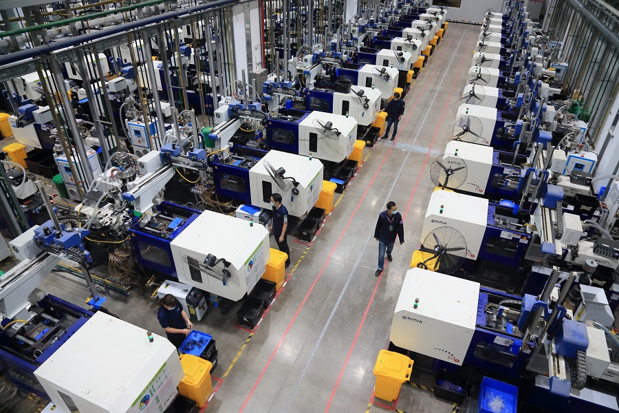 9月15日,三一重工18号厂房自动阀块加工中心。拥有港口机械、路面机械、混凝土机械等多个工程机械设备装配生产线的该车间,是工信部首批智能制造示范车间,工程机械行业首座智能化“灯塔工厂”,实现了生产周期压缩40%,产能提升50%,自动化率提升80%。 湖南日报记者 唐俊 摄