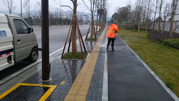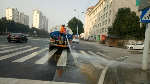 增加市中心城区道路保洁人员,适时延长保洁时间,进行不间断巡回保洁作业。每天组织200多名环卫工人,出动洒水车、机扫车、高压冲洗车等共计51辆,采取人机结合、联车作业模式,对所有的车行道和人行道全部冲洗一遍,对油渍污染严重的地方用烧碱、钢丝刷进行擦洗,对喇叭口、绿化带边角泥沙做到不留死角,确保道路干净整洁。