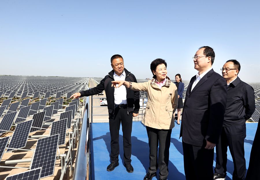 5月23日,毛伟明和自治区党委副书记、自治区主席咸辉在宝丰集团农光一体化项目学习考察。