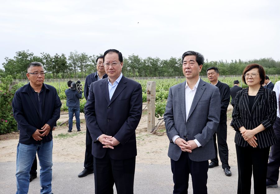 宁夏志辉源石葡萄酒庄地处贺兰山东麓,这里被誉为世界葡萄酒生产的“黄金地带”之一。代表团一行走进园区,延绵数千亩的葡萄地里,刚坐果的葡萄点缀在藤蔓间,很难想象10多年前这里还是废弃的矿产采空区。近年来,通过因地制宜、修旧利废,一座集葡萄种植、加工、生态保护、文旅休闲于一体的生态产业园在废墟上新生。“产业园将生态修复与产业发展结合起来,正是践行‘绿水青山就是金山银山’的生动样板。”毛伟明表示湖南将积极搭建平台,助力宁夏葡萄酒企业来湘拓展市场,让更多贺兰山优质葡萄酒走上湖南人的餐桌。