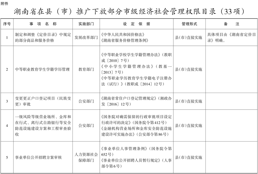 附件:湖南省在县(市)推广下放部分市级经济社会管理权限目录(33项)